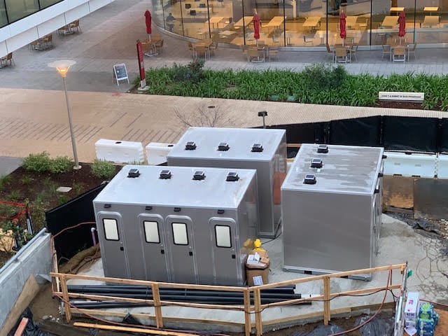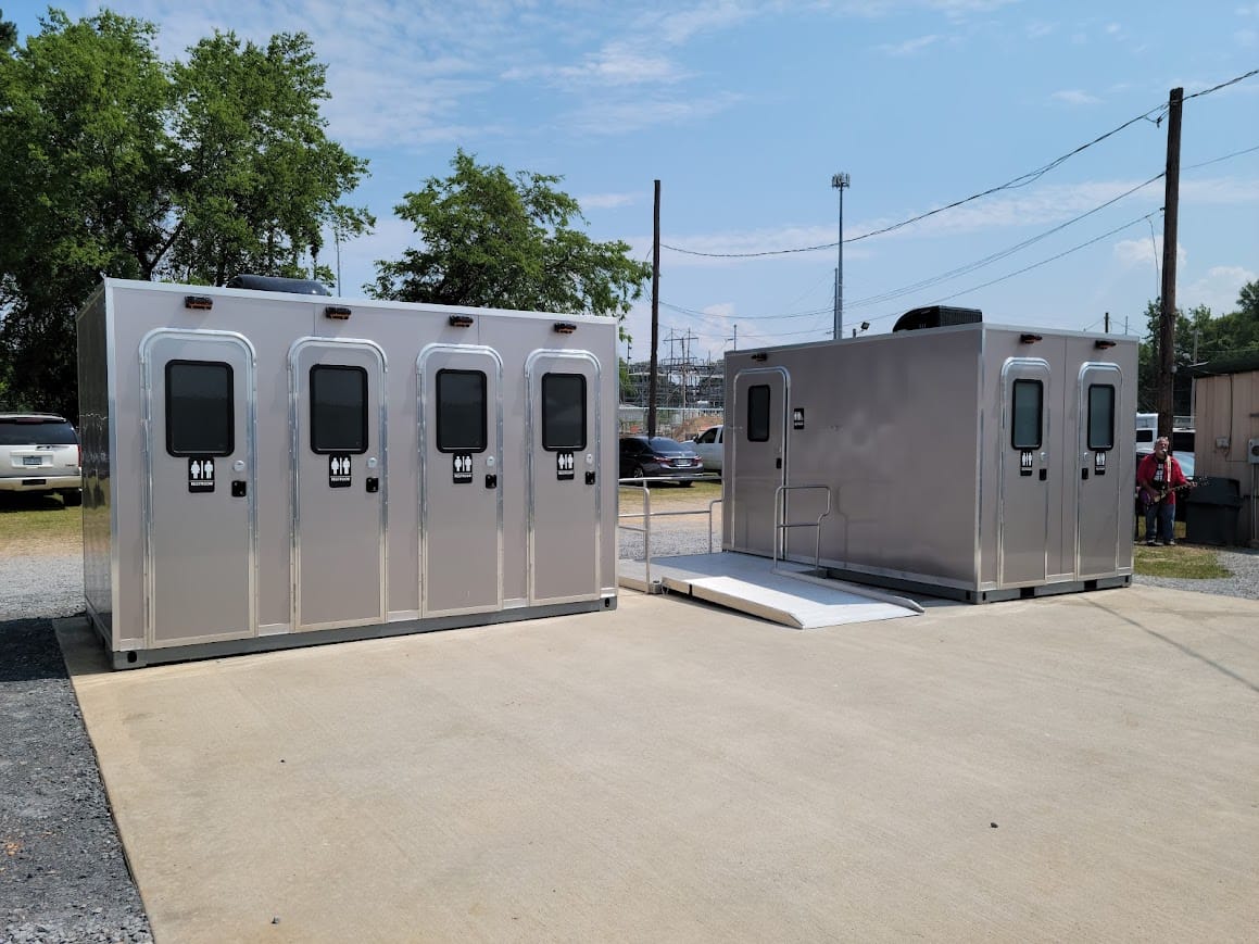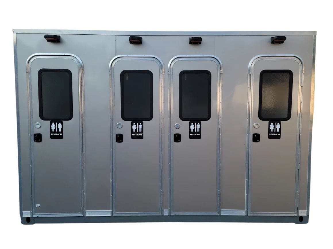 4-stall restroom skid built for permanent or semi-permanent installation. Standard.