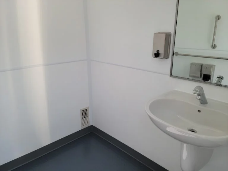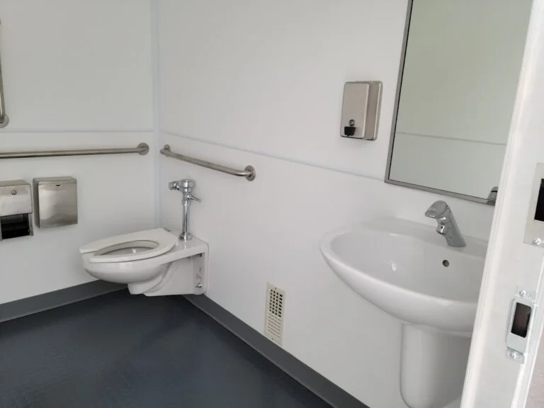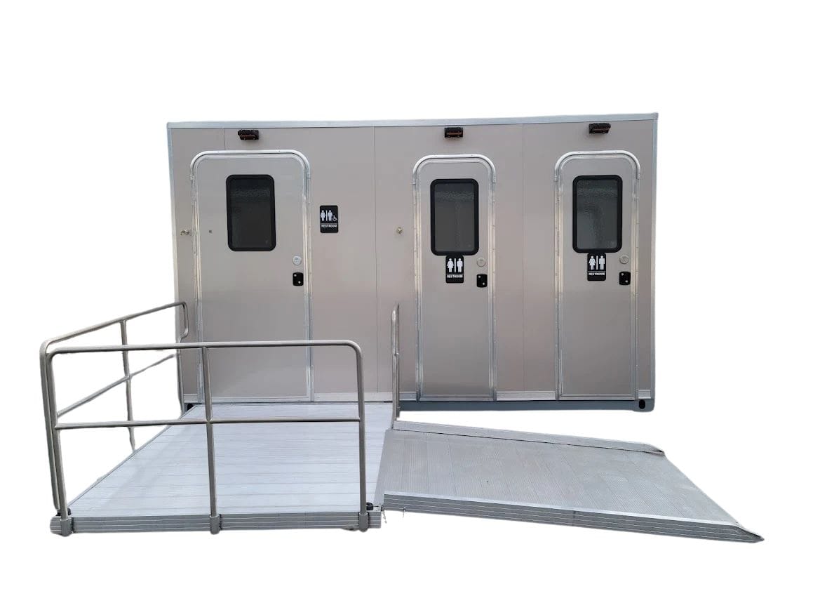 CI 13 – 4 Stall ADA Restroom Skid (13 ft) is a no-wheel restroom skid designed for job sites, parks, facilities, and long-term deployments where a towable trailer is not needed.